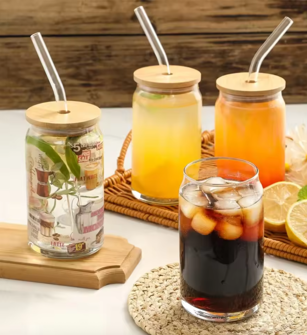 • 350ml/550ml Glass Cup With Lid and Straw Transparent Bubble Tea Cup Juice Glass Beer Can Milk Mocha Cups Breakfast Mug Drinkware.