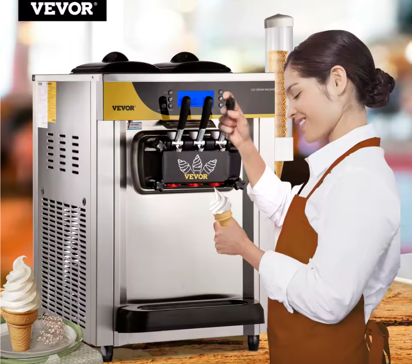 • Commercial Tricolor Desktop Sweet Cone Freezing Equipment Vending Machine