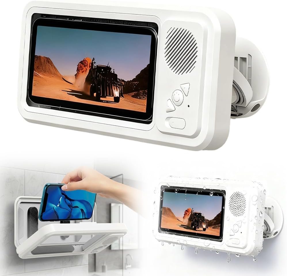 - Equipped with a highly responsive touch screen featuring 0.25mm sensitivity. This play phone holder with speaker built-in shower phone holder, offering added convenience for everyday use